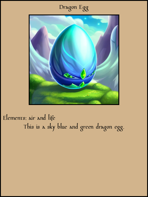 Sneak peak of two parents and the egg they produced (cards will look way cooler later, just getting the basics of elemental heritability and breeding down first.)