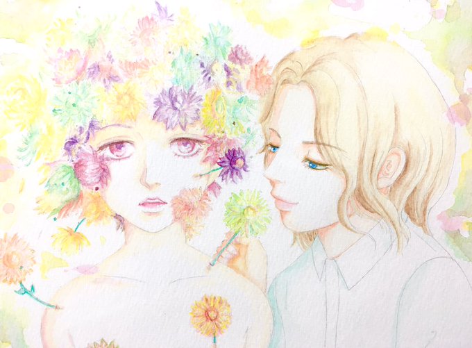 繊細なお花と水彩の淡い色合いがとても綺麗です🌸☺️