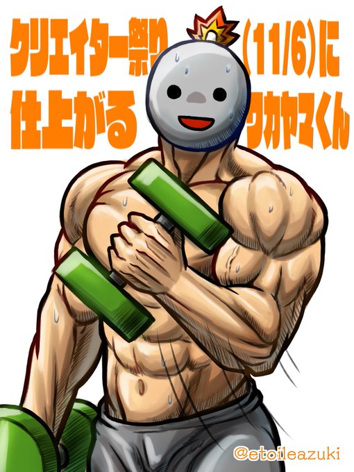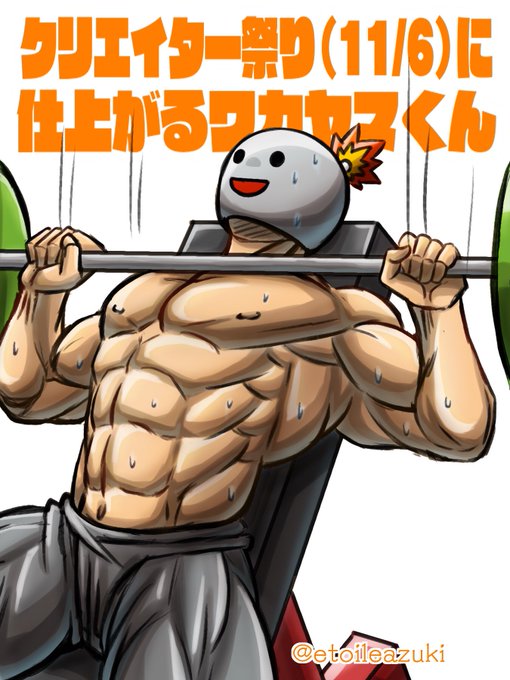 筋トレするワカヤマ君を描いて応援!腕橈骨筋と長橈側手根伸筋が好きです。#クリエイター祭り