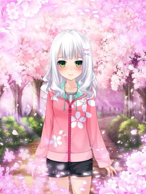 N[パーカー]ひな ( 'ω')桜パーカーによる簡易コーデ #kameのコーデ記録 #dreamgf #dreamgfeng #虹カノ #ニジカノ