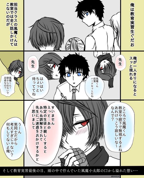 CBC2018小太郎セット ぐだお君が19歳で中学の教育実習に来たという現パロ。3枚目は教育実習最終日にアパートの前で待っていた小太郎くんの告白数秒前