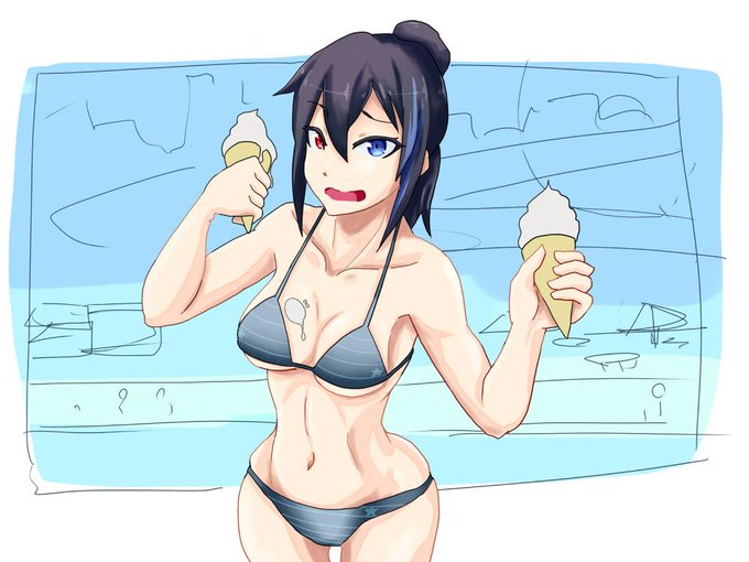 元気の黄色!1.5倍くらいかわいく描けたよ。水着ルコ。