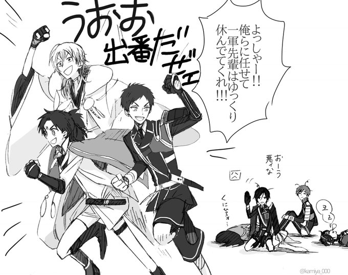 #リプきたキャラを持てる限りの力を使って可愛い絵柄とかっこいい絵柄で描きわける ②のまんばタグミスったんで上げ直しです!ソーリー!(左は落し物を拾った図)
