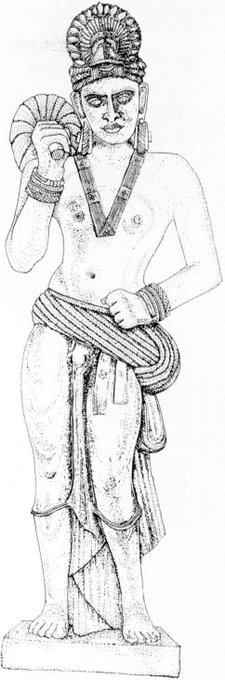 Drawing recreation study of sculpture of Bodhisattva or attendant of Kushan Era