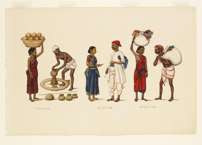couples; including bangle sellers & Pillai couple, Tanjore, ca. 1830