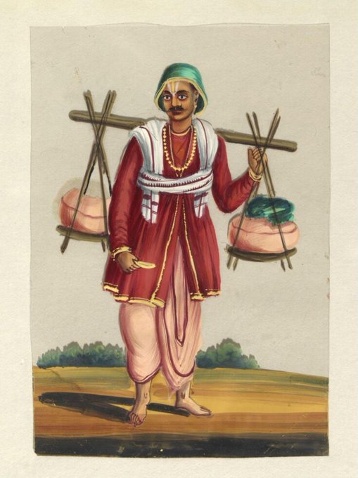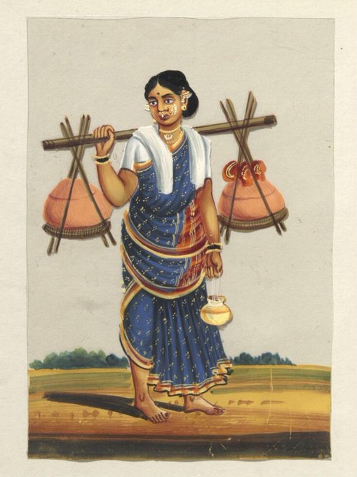woman & Man carrying Ganges water, painting from Trichinopoly, ca.1860 @V_and_A trichirapalli (Trichy)?
