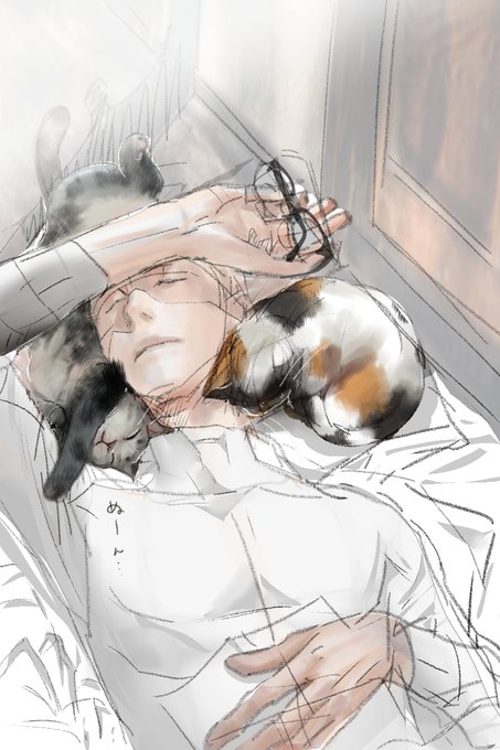 ネコの毛ブラシに感動して男子までネコの毛ブラシで描いてしまいました…ぬくぬくな昼下り