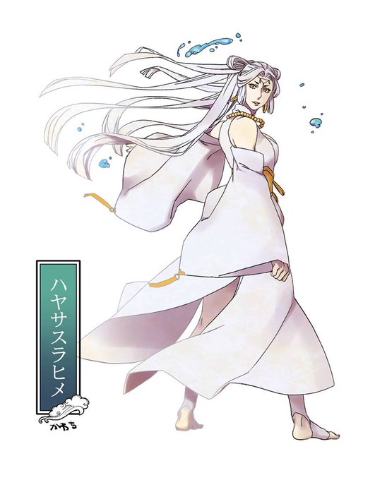 #1日1絵 #長髪耐久 鈩(依り代)と三輪(山神)ならべ。 胸元がはれんちになって顔つきもちょっと違うのよ。