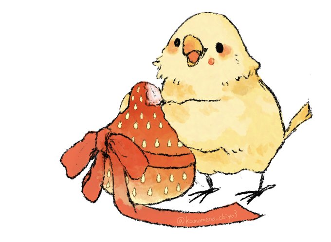 ハッピーバレンタイン🍓🐥 #イラスト #ひよこ #鳥 #illust #ゆるいイラスト #動物イラスト #バレンタインデー