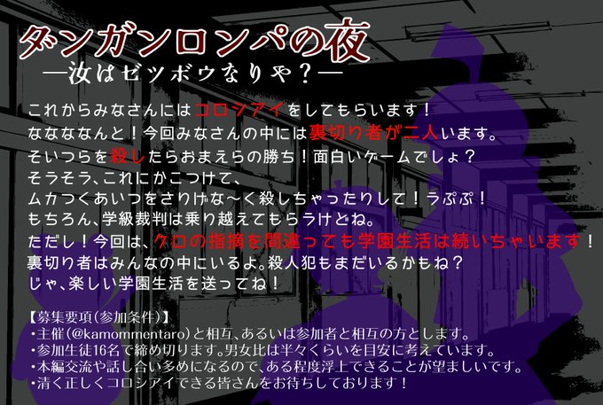 創作論破企画、「ダンガンロンパの夜―汝はゼツボウなりや?―」です これから募集を開始します
