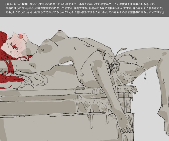 お題箱より。シオンの自慰石化です。琥珀がエーテライトを催淫と石化に調整し、実験は成功したようです。 #odaibako_kamomoo https://t.co/Vty5FPK0g6