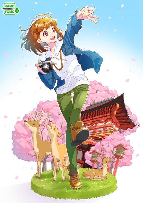 先日の奈良の桜イラストを旅行雑誌風にしてみました!(*´∀`*)