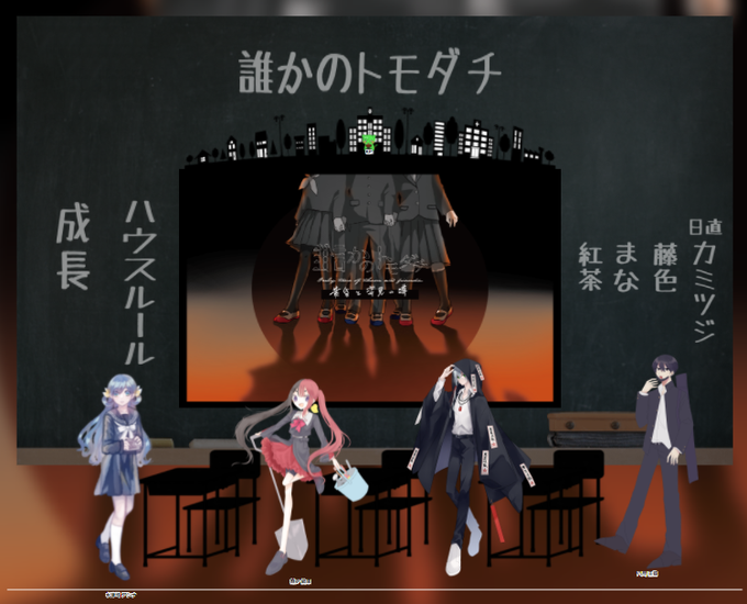PL 紅茶さん、まなちゃん、藤色さん、カミツジさん(立ち絵順)