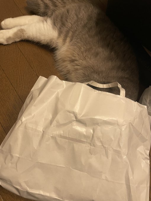 みーちゃん🐈は野菜入れてきた紙袋に夢中🛍