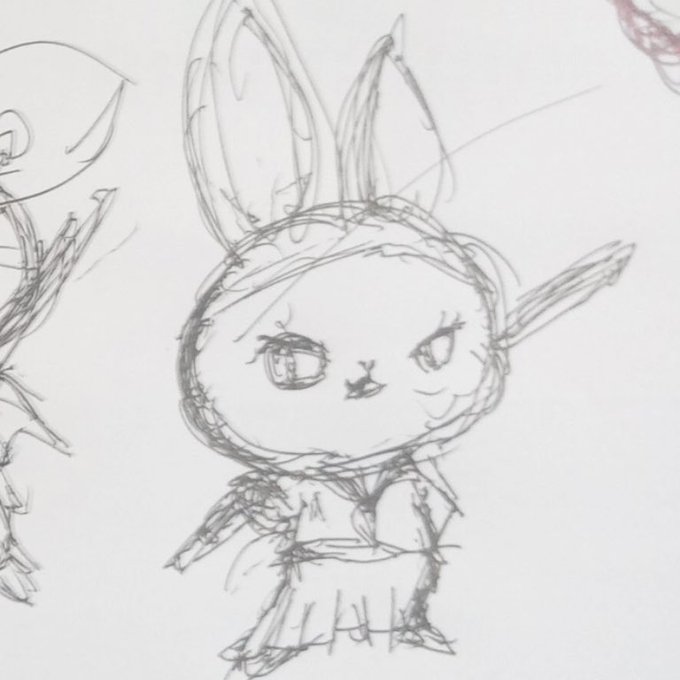 下書きと完成(#^.^#)ぜんぜん変わってるわ #イラスト #うさぎ #兎 #兎子 #兎兎 #下書き
