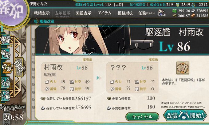 久しぶりに浮上ー とりま艦これのアプデで追加された改二艦は余裕でレベル足りてたので早速改造