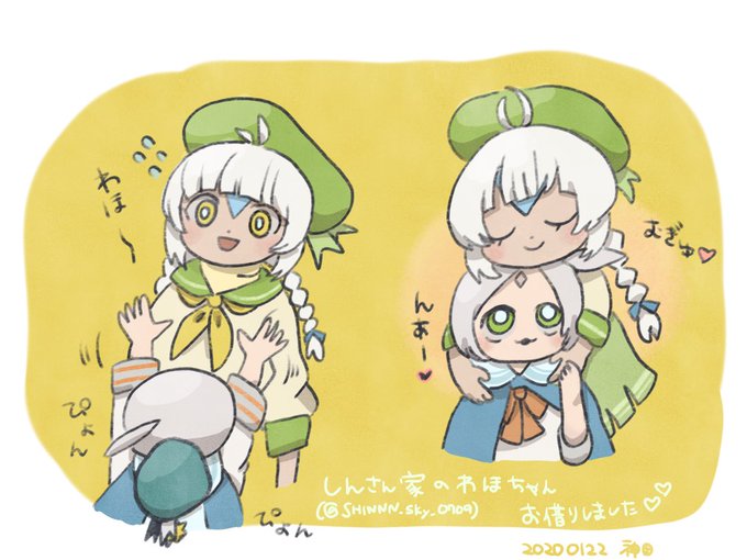 @SHINNN_sky_0709 真似して、わほちゃんのほっぺも触り返したいふにゃん描いてみました☺️💞むぎゅ!