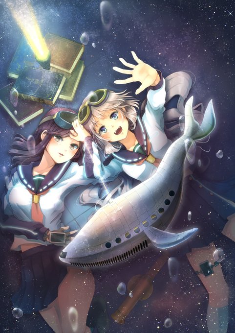 宇宙鯨は恋と青春の夢を見る。 | 兼地智世 #pixiv https://t.co/3q134oDYh2 オリジナル絵です。宇宙×百合好き~~~~