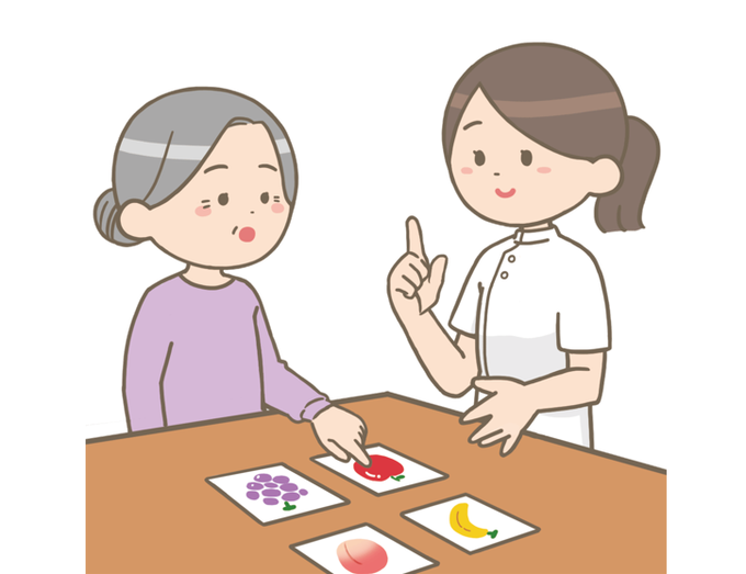 失語症患者さんがリハビリをしているイラスト