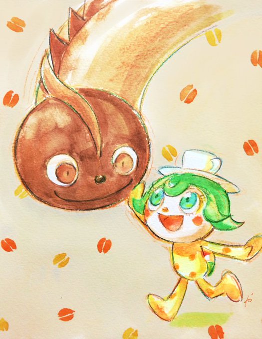 #アンパンマン版深夜のお絵かき60分一本勝負 お題「コーヒー」 初参加~モカとカッパチーノちゃん