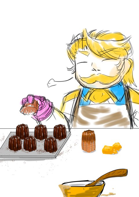 出先で落書き カヌレを焼くゴッフ 落書きなんだけどカヌレは手を抜かんかった