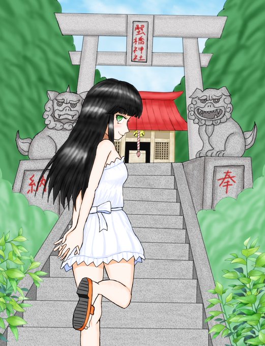 stable Diffusionという画像生成AIで作ったオリキャラの女の子(2枚目)を私が自分で描き直したもの(背景は別にAIで生成した画像を加工)