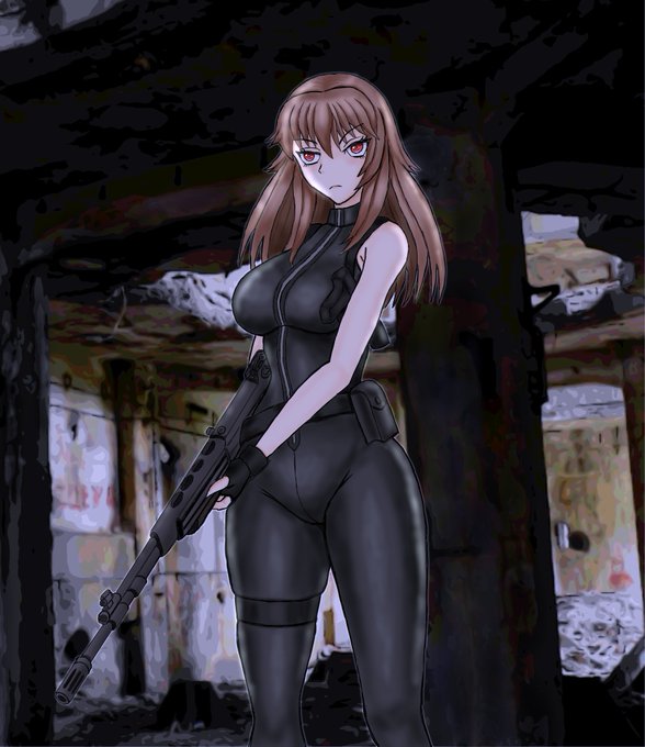 GANTZっぽい全身黒ピチスーツ これから背景と合成してさらに加工します!