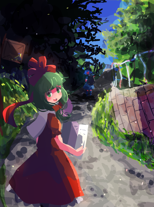 > 霊夢の服を着て楽しそうな秦こころ https://t.co/6yVbI2cp5A #odaibako 霊夢「そこ(もみあげカバー)まで着けるならリボンも着けなさいよ」