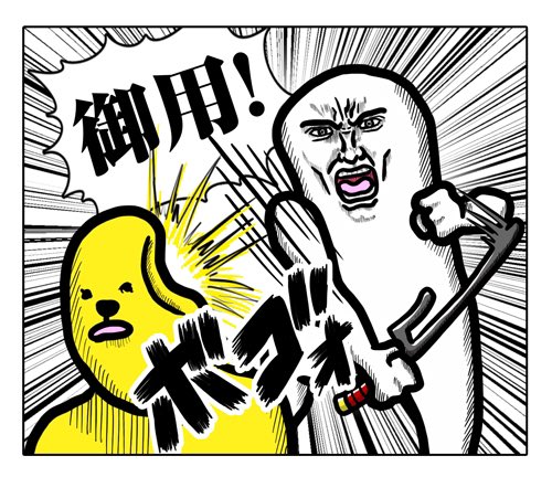 左の黄色い人が殴られているのは