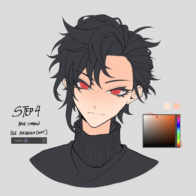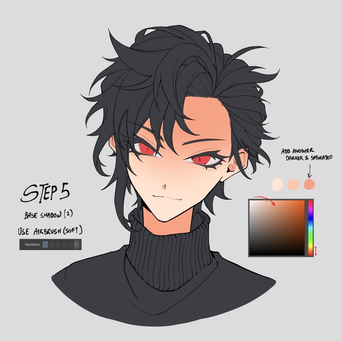 Adding shadows: Let's just say cool colours are commonly the best option to use for shadows. These hard shadows only works when it is behind hard parts (the hair, head to neck, ears etc) and largely depends on which lighting you use.