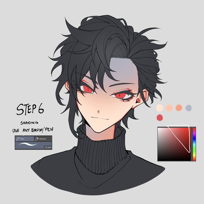 Same as step 4, add more base shading with different colours into the same layer. Let me tell you a secret, legends say adding blue shadows make your art pop more, so try doing that as well👀