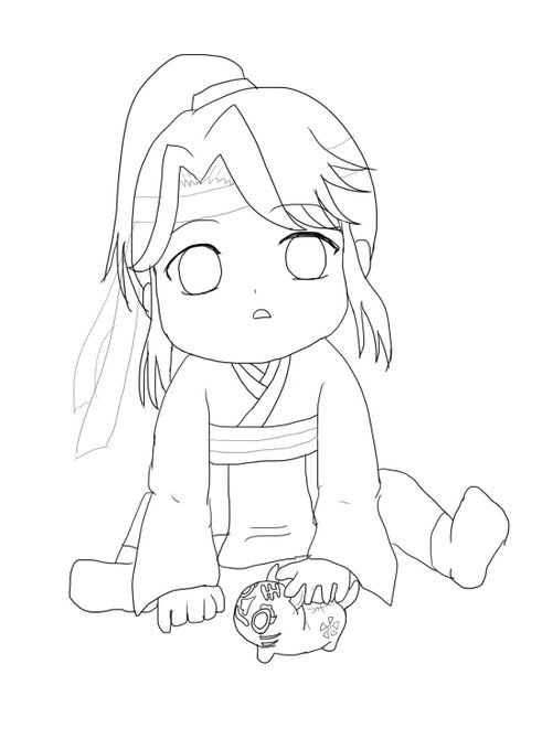 #皆さん線画と塗った後を見せてください ミニキャラうぇんにんとすーじゅい🥰 線画完璧に描けていなくて、色塗り後に線が増えてるってことに気づいた😂笑