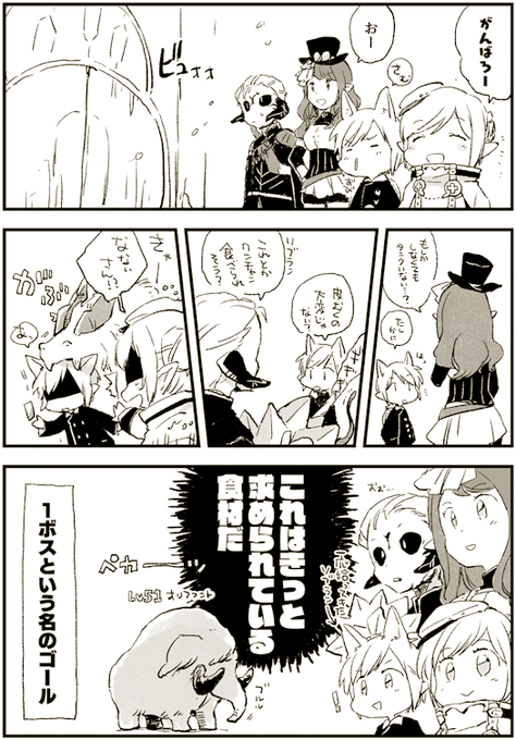 1ボスで食材に巡り合ってしまった我々は…!(ソブランも持ち帰ります) #絵CF2 #ヴィジル班