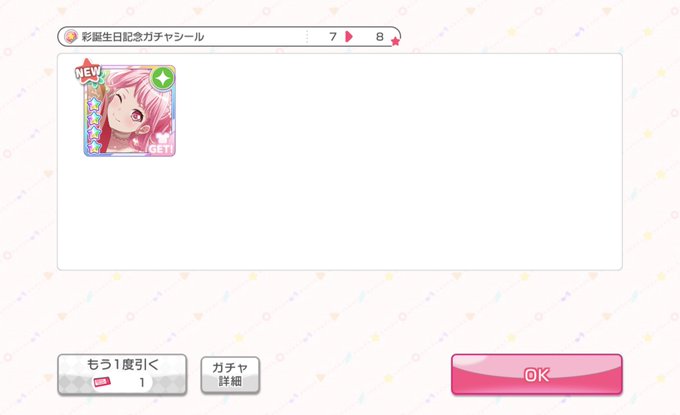 8枚目で誕生日彩ちゃん引けました(*^ω^*)