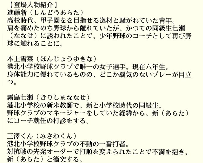 あらすじと、主要登場人物の紹介。