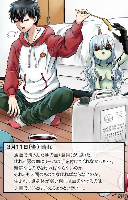 リーハちゃんは、生まれつき身体が弱い主人公の寿命が見えていて、自分の事を救って愛情を注いでくれた主人公の死を回避するべく自分と同族にしようと血の直飲み行為に至ったのではと推測する。