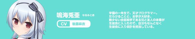 鳴海兎亜さん お誕生日おめでとうございます。 CV PC版 小松アンさん、アニメ版 後藤麻衣さんです。 #鳴海兎亜生誕祭 #ワガママハイスペック