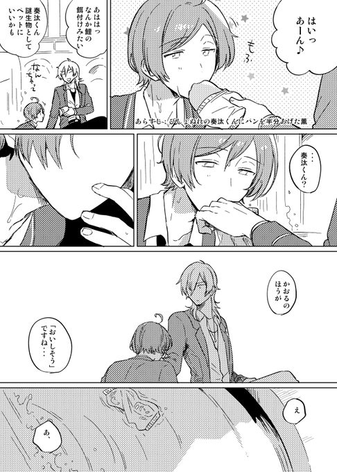 >突然大いなる自然の摂理により奏汰くんにあ〜んしてあげることになった薫くんでしたが、思いのほかそのかわいらしさとゆるふわなひと時にガッツリ癒されてしまい、以降奏汰くんへの餌付けがマイブームになってしまう…https://t.co/knjj6LDwaP #odaibako_kaokanah こんにちは、お題ガン無視太郎です