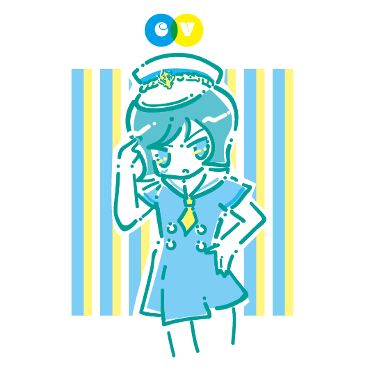 C+Kが見やすいだろうけど、C+Yもポップでかわいいのではー?(でもCYだと髪の毛が緑かブルーになってしまうのはいまいちか〜??シャーの髪の毛は黄色で出せる…)
