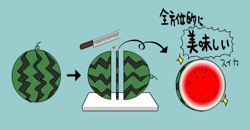 母ちゃんスイカ切るついでに一番おいしいとこ食べるの でも5ミリ幅だからゆるして