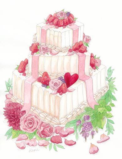 #中里かおり #ウェディングイラスト #ケーキ #苺 #リンベル #引出物 #カタログギフト #イラスト #透明水彩 #Watercolorpainting #art #girl #woman #illustrator #ink #flower #cake #ringbell