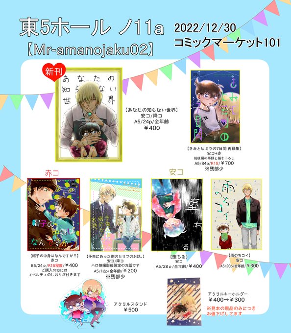 【12/30冬コミ】お品書き【DC】 #コミックマーケット101 #C101 #冬コミ #お品書き #安コ #降コ #赤コ https://t.co/vvKbESJDok