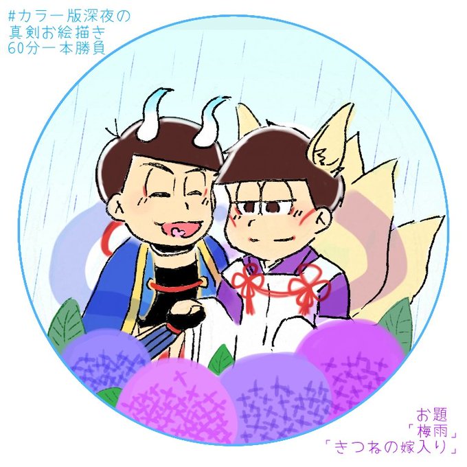 #カラ一版深夜の真剣お絵描き60分一本勝負 青九でお題は「梅雨」と「きつねの嫁入り」をお借りしました🙌