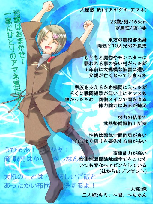 @weapon_twin イベント3人目に犬屋敷周(アマネ)でログインします!基本的に、仲の良い人達とお話ししたり、軽食を食べまくっています。どうぞお気軽にお声掛け下さい。(*´꒳`*)