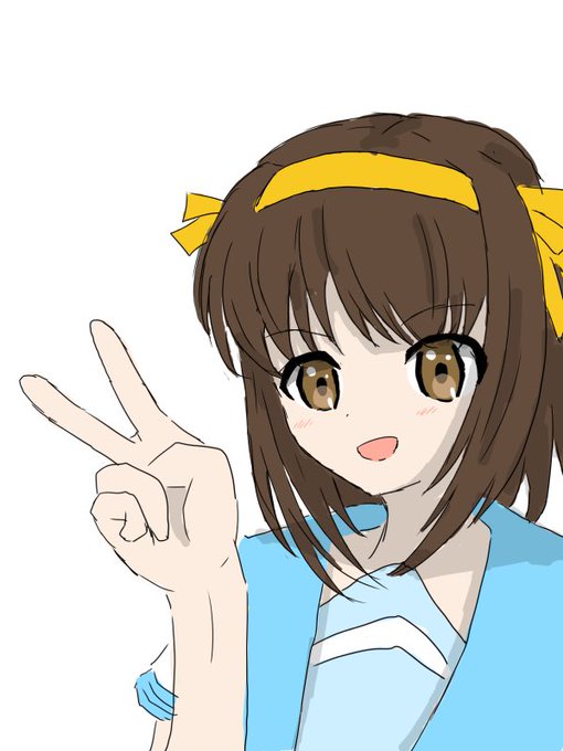 #ハルヒ版深夜の即興お絵描き60分 【涼宮ハルヒ】 親の顔より見た構図。思いつかなかったからしょうがない。