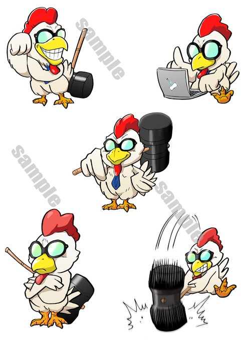 ニワトリハンマー君のキャラクタイラスト ラインスタンプにもできそう