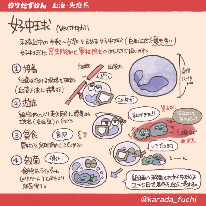 【白血球】White blood cell からだを細菌や異物から守る! そんな白血球は兄弟がたくさんいます。 基本となる構造と機能まとめ✍️ (前半)