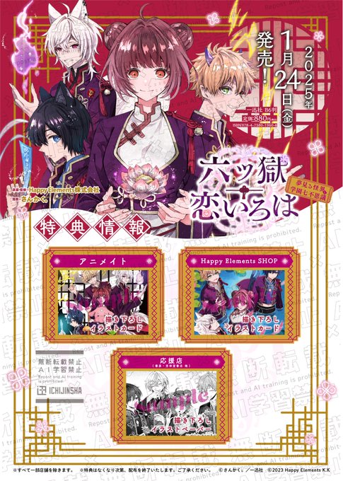 【ご報告】 🌸六ツ獄恋いろは 夢見る怪異と学園七不思議🌸 2025.1.24(fri)発売 特典も公開されました! よろしくお願いいたします🌸*・ #六ツ恋