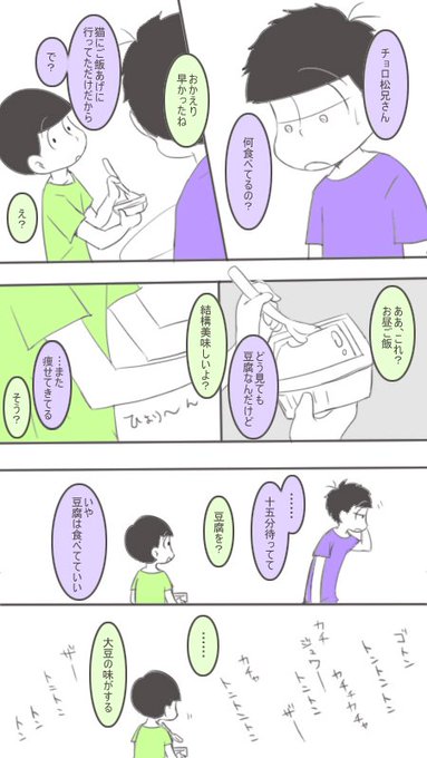 年中松のごはん。 に、長男登場で円周松のごはん。 長男に料理出来るのバレると作らされるからバレたくない一松。 嘘を頑張るチョロ松。