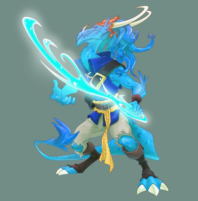 DnD commission for a Genasi Pirate, really enjoyed drawing this one a while back - still got slots open, me hearties 🏴☠️